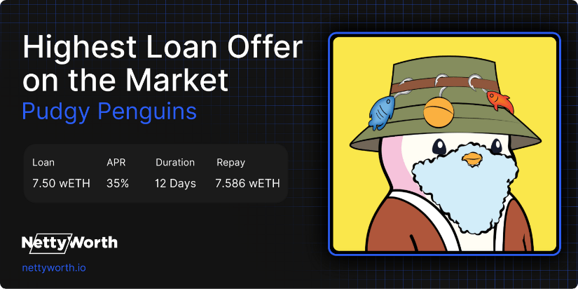 Principal: 8.00 wETH APR: 35% LTV: 75.80% Duration: 12 days (view offers)